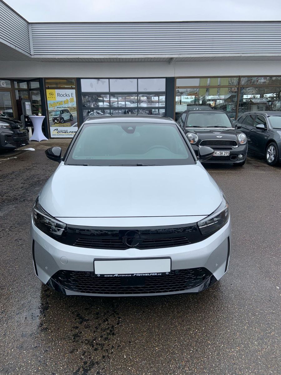 Weitere Ausstattung:6 Lautsprecher, Airbag Fahrer-/Beifahrerseite, Außenspiegel elektr. verstell- und heizbar, elektr. anklappbar, B-Säulen schwarz Hochglanz (außen), Bordcomputer, Bremsassistent, Dach Kontrast-Lackierung, Dachhimmel schwarz, Elektron. Stabilitäts-Programm Plus (ESP), Fahrassistenz-System: Berganfahr-Assistent (HSA, Hill Start Assist), Fahrassistenz-System: Müdigkeitserkennungs-Sensor, Fahrassistenz-System: Spurhalteassistent, Fahrassistenz-System: Totwinkel-Assistent, Fahrassistenz-System: Verkehrszeichenerkennung, Farbdisplay (7 Zoll), Fensterheber elektrisch vorn + hinten, Fensterheber vorn elektr. mit Einklemmschutz, Feststellbremse elektrisch, Gepäckraumbeleuchtung (LED), Geschwindigkeits-Regelanlage (ABstandstempomat) inkl. Geschwindigkeits-Begrenzeranlage, Getriebe Automatik - mit Start-/Stop (8-Stufen), Heckleuchten LED, Heckscheibenwischer, Innenausstattung: Dekorleisten Grau, Isofix-Aufnahmen für Kindersitz an Beifahrersitz, Isofix-Aufnahmen für Kindersitz an Rücksitz, Karosserie: 5-türig, Kopf-Airbag-System, Kraftstofftank 44 Ltr., Lenkrad (Leder, vegan) mit Multifunktion, Lenksäule (Lenkrad) verstellbar, Leseleuchten vorn (2), Mittelarmlehne vorn mit Ablagefach, Modellpflege, Motor 1,2 Ltr. - 74 kW, Nebelschlussleuchte, Opel Connect, Otto-Partikelfilter (OPF), Parkpilotsystem vorn und hinten, Pedale Aluminium, Reifen-Reparaturkit, Rückfahrkamera mit 180° Umgebungsansicht und Panoramafunktion, Rücksitzbank geteilt/klappbar (60:40), Schadstoffarm nach Abgasnorm Euro 6e, Scheinwerfer LED, Seitenairbag vorn, Sicht-Paket, Sitzbezug / Polsterung: Stoff, Sportsitze vorn, Stoßfänger Sport-Design, Stoßfänger Wagenfarbe, Türgriffe außen Wagenfarbe, Türgriffe innen verchromt, Warnanlage für Sicherheitsgurt, Beifahrerseite, Warnanlage für Sicherheitsgurt, Fahrerseite, Warnanlage für Sicherheitsgurte hinten