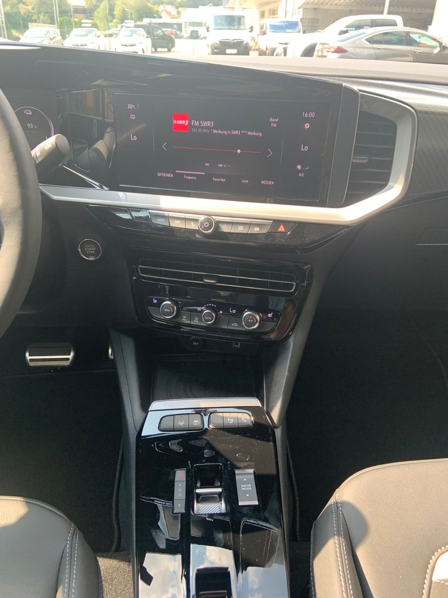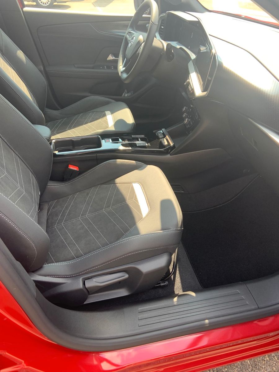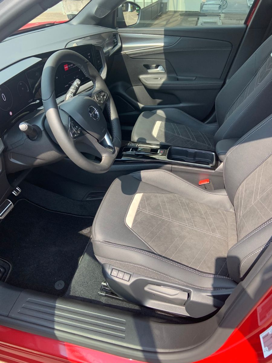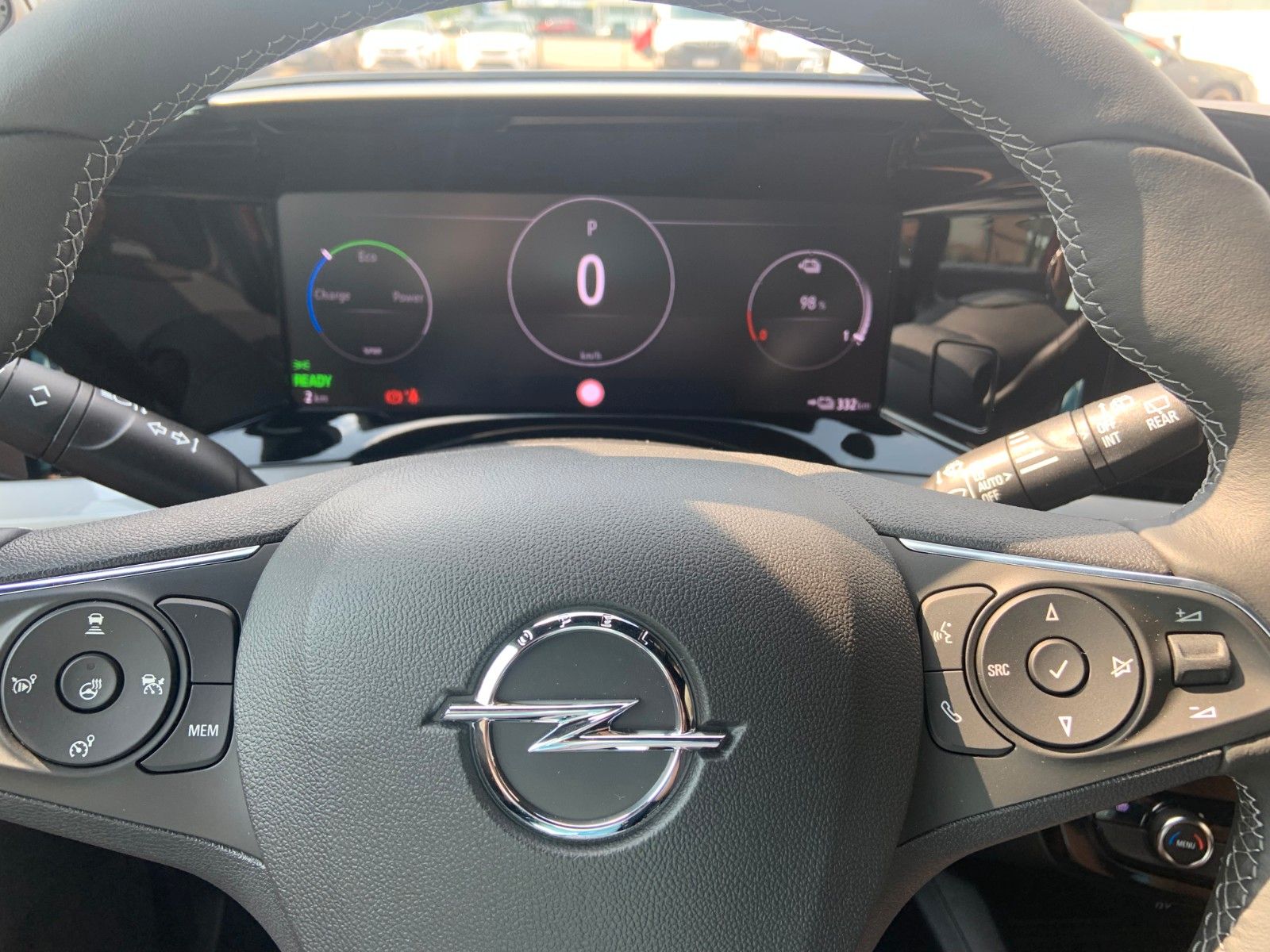 Weitere Ausstattung:6 Lautsprecher, Akustischer Fußgängerschutz (Außensound), Bluetooth Audio-Streaming, DAB-Tuner (Radioempfang digital), Dach Diamant-Schwarz, Dachhimmel schwarz, Dachspoiler, Elektrofahrzeug, Elektromotor 100 kW (cont. 57 kW), Elektron. Stabilitäts-Programm Plus (ESP), Fahrassistenz-Paket: Active Drive Assist, Fahrassistenz-Paket: Active Drive Assist plus, Fahrassistenz-System: Fernlichtassistent, Fahrassistenz-System: Müdigkeitserkennungs-Sensor, Fahrassistenz-System: Verkehrszeichenerkennung, Feststellbremse elektrisch, Freisprecheinrichtung (Bluetooth) mit Sprachsteuerung, Gepäck-/Laderaumboden doppelt, Heckleuchten LED, Innenausstattung: Leder Alcantara, Karosserie: 5-türig, Klimaautomatik, Kopf-Airbag-System, Kühlergrill, Opel Vizor, Rahmen in Chrom, Ladekabel mit Schukostecker (Mode 2), Ladevorrichtung On-Board-Lader (11 kW), Lenkrad heizbar, LM-Felgen, MP3-Schnittstelle für Mobiltelefon/Handy, Nebelscheinwerfer LED, Radstand 2561 mm, Reifen-Reparaturkit, Seitenairbag vorn, Sicht-Paket, Wärmepumpe zur Reichweitenoptimierung, Wärmeschutzverglasung, Wärmeschutzverglasung hinten abgedunkelt (Solar-Protect)